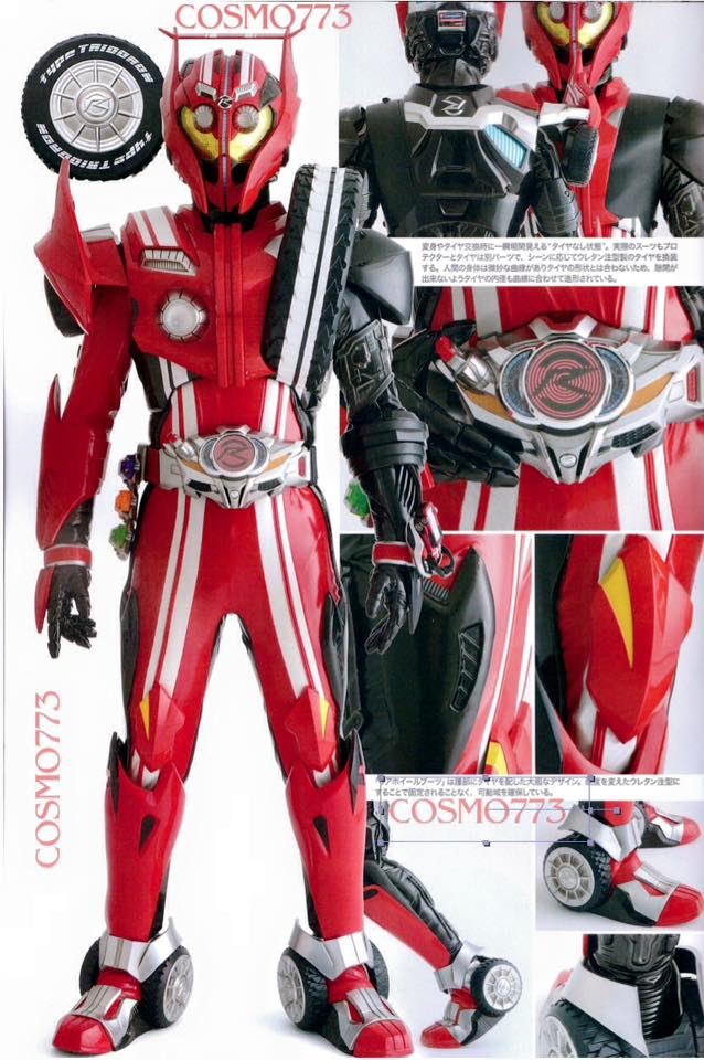 Here’s when I start really liking the suit design. Initially, I didn’t care much for Type Tridoron, or most of Drive’s forms for that matter. But thinking about it some more, I find this suit really fitting. Considering Drive’s initial form was based on his own car already, it makes sense to go all the way for his final form. It’s powers, involving mixing the Shift Cars’ powers to make move combinations is really cool, and the fact that “Mr Belt” takes over sometimes and changes to his personality (with the suit actor matching said personality) is also amazing. It’s a sort of return to form for Rider suits, going for a more basic look instead of being bright and flashy. A nice change of pace.